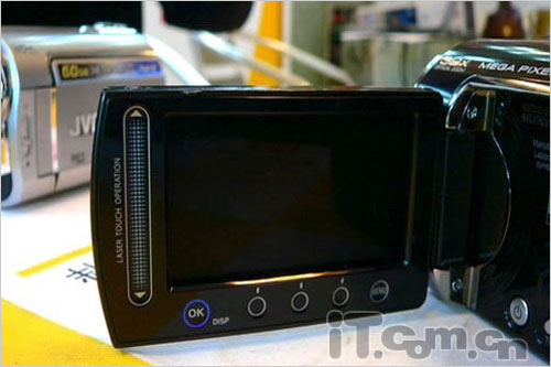 從外觀上看,JVC MG465同前代產(chǎn)品MG365基本保持了相同,全黑色作為主色調(diào),顯得簡潔精致,機(jī)身體積約為54×68×113mm,重量約315克左右,把持起來比較舒適。機(jī)身后面搭載一塊2.7英寸液晶屏幕進(jìn)行取景,并且配有光感應(yīng)操作系統(tǒng),可以觸摸感應(yīng)點(diǎn)進(jìn)行操作,使用起來非常方便。