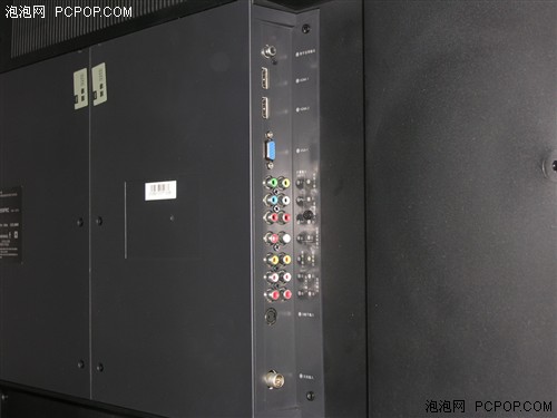 大部分接口被安排在了機器的背面,這里可以看到有兩組HDMI接口,一組VGA接口以及電視常見的分量接口等。不過這可不是全部的接口,為了方便用戶,這款電視還前置很多常用接口。