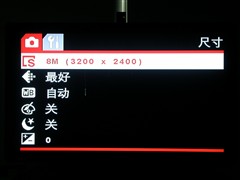 左上角的圖標(biāo)變成了照相模式,這樣就可以拍攝最大像素為3200×2400的圖像了,而且如果SD卡不夠大的話(huà),還可以減小像素來(lái)節(jié)省空間。
