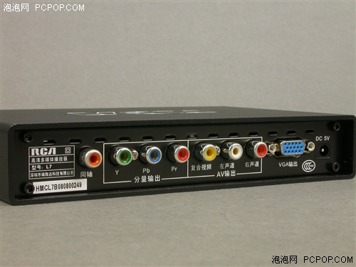 接口從左到右依次為同軸、分量、復(fù)合視頻、音頻、VGA與電源接口。