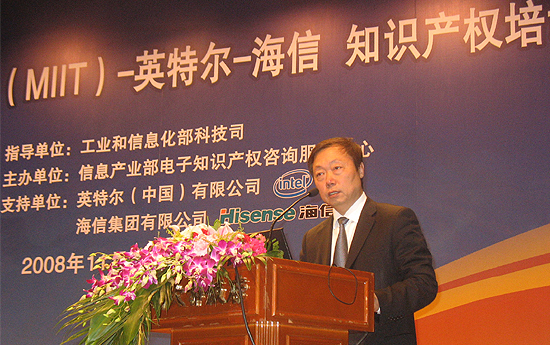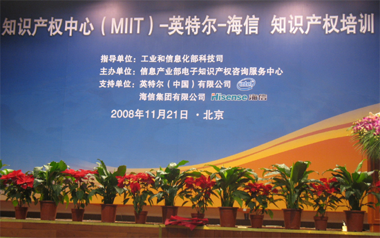 2008年11月20日,由工業(yè)和信息化部科學(xué)技術(shù)司主辦的“第十屆信息技術(shù)領(lǐng)域?qū)@麘B(tài)勢(shì)發(fā)布會(huì)”在北京召開(kāi)。11月21日,由工信部知識(shí)產(chǎn)權(quán)中心與海信、英特爾攜手舉辦的“知識(shí)產(chǎn)權(quán)全國(guó)培訓(xùn)‘331計(jì)劃’”正式啟動(dòng)。