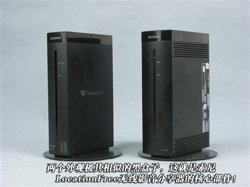 索尼“LocationFree”無線影音傳輸組合的全套系統(tǒng)包含多個組成部分。最核心的部件就是信號發(fā)射器和接收器。這兩個部件的外觀、體積都非常接近,主要的區(qū)別只體現(xiàn)在厚度方面。