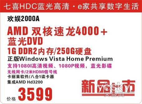 據(jù)了解,七喜歡娛2000A是一款基于微軟最新Vista操作系統(tǒng)的藍(lán)光高清電腦,與傳統(tǒng)的藍(lán)光DVD播放機(jī)相比,由于配備了高性能的雙核處理器,250G大容量硬盤,所以除了可以播放藍(lán)光影碟以外,還是一臺(tái)主流的家用電腦,可用于下載、播放網(wǎng)絡(luò)高清資源、學(xué)習(xí)、休閑娛樂等。
