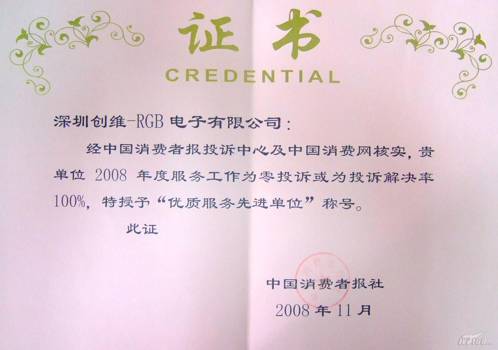 高清家電網(wǎng)新聞資訊頻道 最新消息:由中國消費者報社、中國消費網(wǎng)聯(lián)合舉辦的“2008年度優(yōu)質(zhì)服務(wù)先進(jìn)單位”評選活動揭曉,創(chuàng)維集團(tuán)被評為“2008年度優(yōu)質(zhì)服務(wù)先進(jìn)單位”,這是創(chuàng)維連續(xù)多年蟬聯(lián)此稱號。