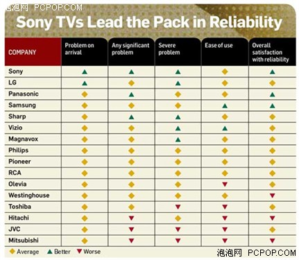 在所有的平板電視品牌中,索尼成了最大的贏家。由于產(chǎn)品的素質(zhì)出色,其在硬件可靠度和客戶服務(wù)方面獲得了極高的評價。而LG、松下、三星、夏普和Vizio也在售后電話等待時間方面獲得了不錯的成績?傮w看來,索尼、松下和三星的總體用戶滿意度是最高的。