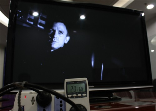 第二組數(shù)據(jù)是切換到電影模式后使用了5分鐘后的累計功耗,該模式下5分鐘累計耗電0.01千瓦,約合每小時0.12度,比起第一組數(shù)據(jù)有減少了近60%,非常驚人。