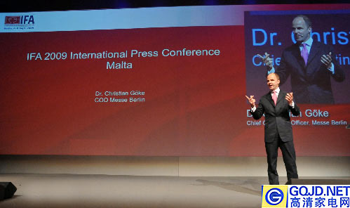 2009年9月4月,為期6天的“2009 IFA德國柏林消費(fèi)電子”在柏林國際展覽中心正式開幕(2009年9月4日—9月9日)。這次展品范圍包括高清數(shù)字電視、無線生活、數(shù)碼成像和數(shù)碼音樂以及個(gè)人電腦等。家電巨頭飛利浦、LG、索尼、三星、松下以及國內(nèi)的海爾、長虹等企業(yè)都攜帶最新產(chǎn)品亮相展會(huì),許多新品是全球首次面世。2009IFA柏林消費(fèi)電子展,為我們充分展示了未來高科技的生活方式。