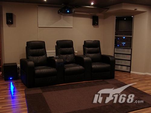 這是一個(gè)極其強(qiáng)勁的影院室,先不說(shuō)專(zhuān)業(yè)的影院布局,單從器材上來(lái)看,這個(gè)搭配就值得肯定。這是一個(gè)百分百的標(biāo)準(zhǔn)藍(lán)光次世代組合,擁有索尼1080P SXRD投影機(jī)VPL-HW10,一套7.1聲道的德國(guó)金榜LE系列音箱,各個(gè)聲道分別以Canton LE 107為前置主音箱、Canton LE 101為環(huán)繞音箱、同樣以Canton LE 101為后置音箱,Canton LE 150 CM為中置音箱,以Audio Pro Sub Nova為低音炮。而整個(gè)系統(tǒng)的影音中心就是先鋒SC-LX71功放,播放器是先鋒BDP-LX70藍(lán)光碟機(jī),適合有高品質(zhì)追求的發(fā)燒友。