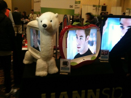 臺灣瀚斯寶麗兩款特殊造型液晶電視將登陸CES 2010展會現(xiàn)場。這兩款電視尺寸都不大,為了能夠引人注目同時起到很好的裝飾效果,其中一款被鑲嵌在蘋果形的邊框中,而另一款則被鑲嵌在更可愛的北極熊玩具中,堪稱CES2010展會上一道非常特別的風景線。