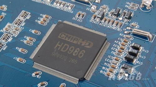 網(wǎng)影RM910采用了最新的CHIP HD986的主控芯片,此芯片為LQFP工藝封裝,擁有176條引腳,最高主頻達到600MHz,前端總線200MHz,采用DDR SDRAM內(nèi)存,綜合性能達到了目前高清播放器的領(lǐng)先地位,見圖 6。