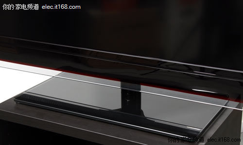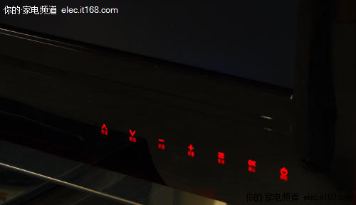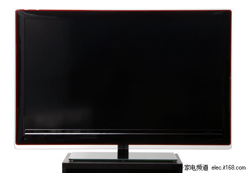 本次評測機型為L46P11FBDE,機身采用雙色注塑工藝和個性邊框設計,包括炫紅、冰藍、雅灰三種色彩的邊框搭配,透明邊框延展出來突顯水晶般透明的氣質(zhì),黑水晶屏幕對外界光線反射很少,最大限度提供清晰圖像,機身面板沒有任何的文字標識,Logo與觸摸機身按鍵都是在開機后通過背光點亮,