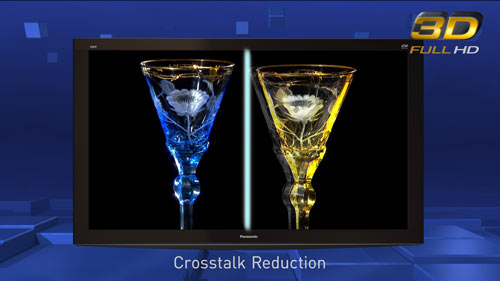 在獨自體驗過一陣子全高清3D影片后,感受到了立體畫面的新鮮刺激,畫面中的場景甚至?xí)S著你的移動而出現(xiàn)變化,但也體驗到了目前3D電視所存在的一些問題,等離子與液晶共同存在著左右圖像串?dāng)_和分離度不足的情形,在松下的宣傳片中,這被叫做CrossTalk,也就是右眼本不該看到左眼圖像的內(nèi)容,但由于響應(yīng)延遲等等原因,卻有圖像殘留下來,產(chǎn)生重影。