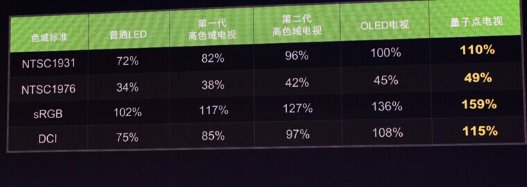 其實(shí)介紹這么多了,大家應(yīng)該都認(rèn)識到了這些提升色域值的方法都是熒光粉方案,然而熒光粉即使再如何改進(jìn),其為LED電視提升色域值的能力已經(jīng)達(dá)到了極限。那有沒有更高效的色彩解決方案呢?