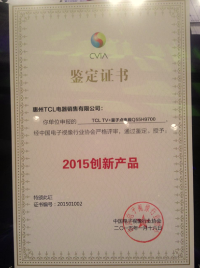 早在2014年9月德國IFA展上,TCL就率先展示其量子點電視,并一舉榮獲大會的量子點顯示技術(shù)金獎。2015 CES上,TV+量子點電視、真彩H7800更是大放異彩,給參展媒體和觀眾帶來了空前出色的視覺享受,并以其在色彩顯示技術(shù)領(lǐng)域的卓越表現(xiàn),受到了CCTV三大頻道連續(xù)專題報道,引發(fā)全球轟動。