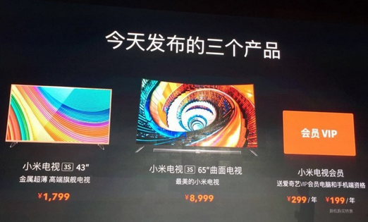 2016年3月23日,小米科技于北京舉行“2016小米電視戰(zhàn)略發(fā)布會”,小米首款65英寸曲面UHD 4K電視3S閃耀登場,同時發(fā)布的還有43英寸超薄金屬電視,售價僅為1799元,挑戰(zhàn)了極限性價比。小米聯(lián)合創(chuàng)始人、小米電視負(fù)責(zé)人王川,在發(fā)布會上爆出了許多關(guān)于小米電視的“內(nèi)幕”。比如,兩年前,雷軍要求每年只做一款電視,而小米電視的戰(zhàn)略是制作高端旗艦電視。