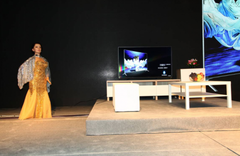 新品的發(fā)布方式出乎所有人的意料:長虹邀請了一位特殊嘉賓——最近大熱的高顏值美女機器人“瑤瑤”到現(xiàn)場,與長虹人工智能新品同臺對話,產(chǎn)品功能的介紹和演示在兩個智能機器的“一問一答”之中上演。